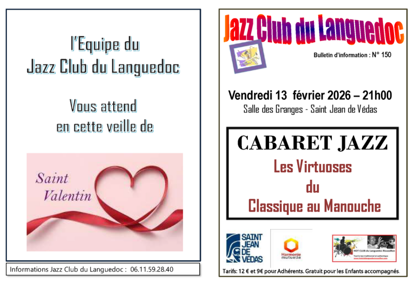 L'équipe du Jazz Club du Languedoc vous donne rendez-vous la veille de la Saint-Valentin.