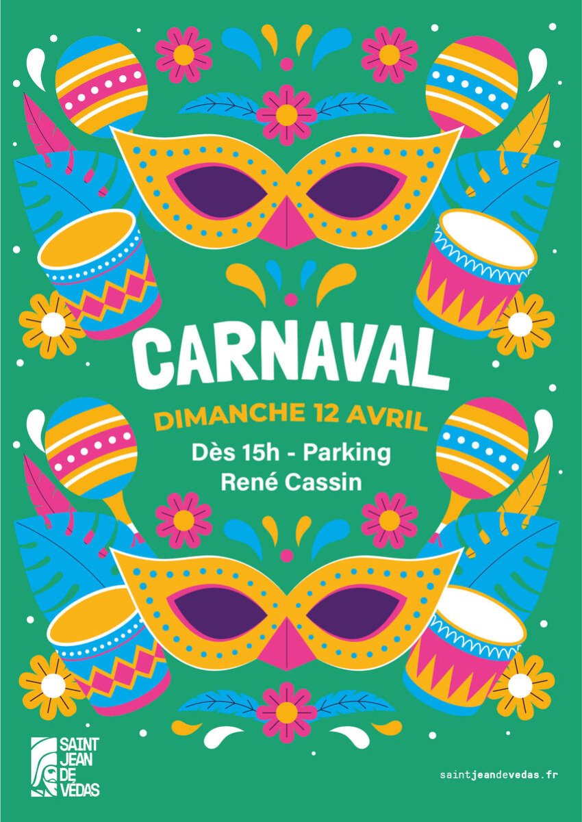 Le traditionnel Carnaval se déroulera le dimanche 12 avril à partir de 15h au parking du groupe scolaire René Cassin. Costumes, musique, animations et bonne humeur seront au rendez-vous.