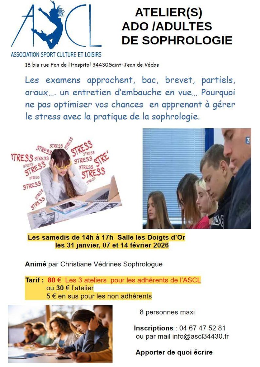 Samedi 14 mars, l’ASCL organise un stage de sophrologie de 14h à 17h.