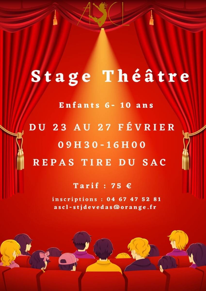 L’ASCL organise un stage de théâtre du 23 et 27 février 2026 de 9h30 à 16h.